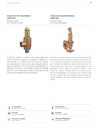 rança angular com aprovação TÜV e certificação europeia. diâmetros nominais menores agora permite o projeto mento. Válvulas de segurança compactas e testadas em feita de materiais resistentes à corrosão. O corpo de bron-