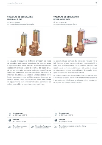 A série de válvulas de segurança flangeadas 355 impressio- O alto desempenho de toda a série desde DN 15 a As válvulas de segurança de bronze protegem os vasos As características técnicas das séries de válvulas 642 e
