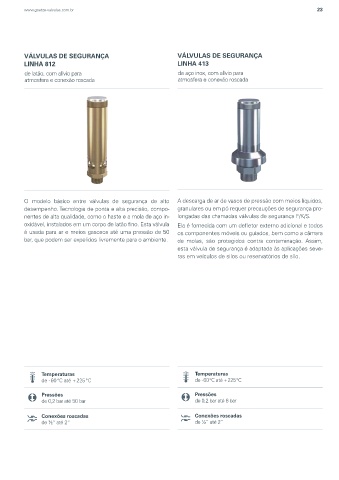 Nossa menor e mais compacta válvula O modelo básico entre as pequenas Esta válvula de segurança de alto de- O modelo básico entre válvulas de segurança de alto A descarga de ar de vasos de pressão com meios líquidos,
