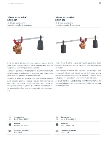 Esta válvula, com seu comportamento de abertura propor- Uma válvula versátil comprovada com característica pro- Esta válvula de alívio angular com alavanca e peso é uma Esta válvula de alívio angular com dupla alavanca e peso