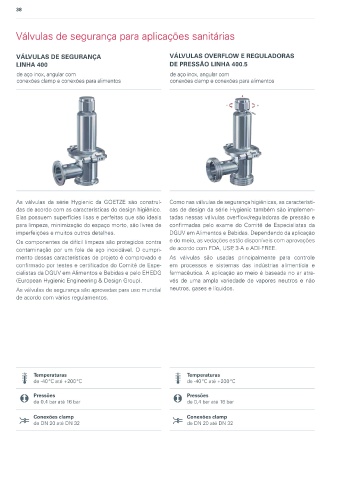 As válvulas da série Hygienic da GOETZE são construí- Como nas válvulas de segurança higiênicas, as característi- No campo das aplicações higiênicas ou de serviço limpo,
