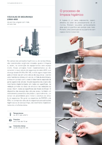 As válvulas da série Hygienic da GOETZE são construí- Como nas válvulas de segurança higiênicas, as característi- No campo das aplicações higiênicas ou de serviço limpo,